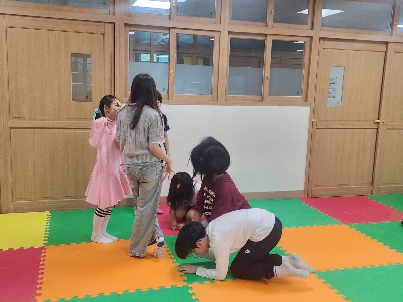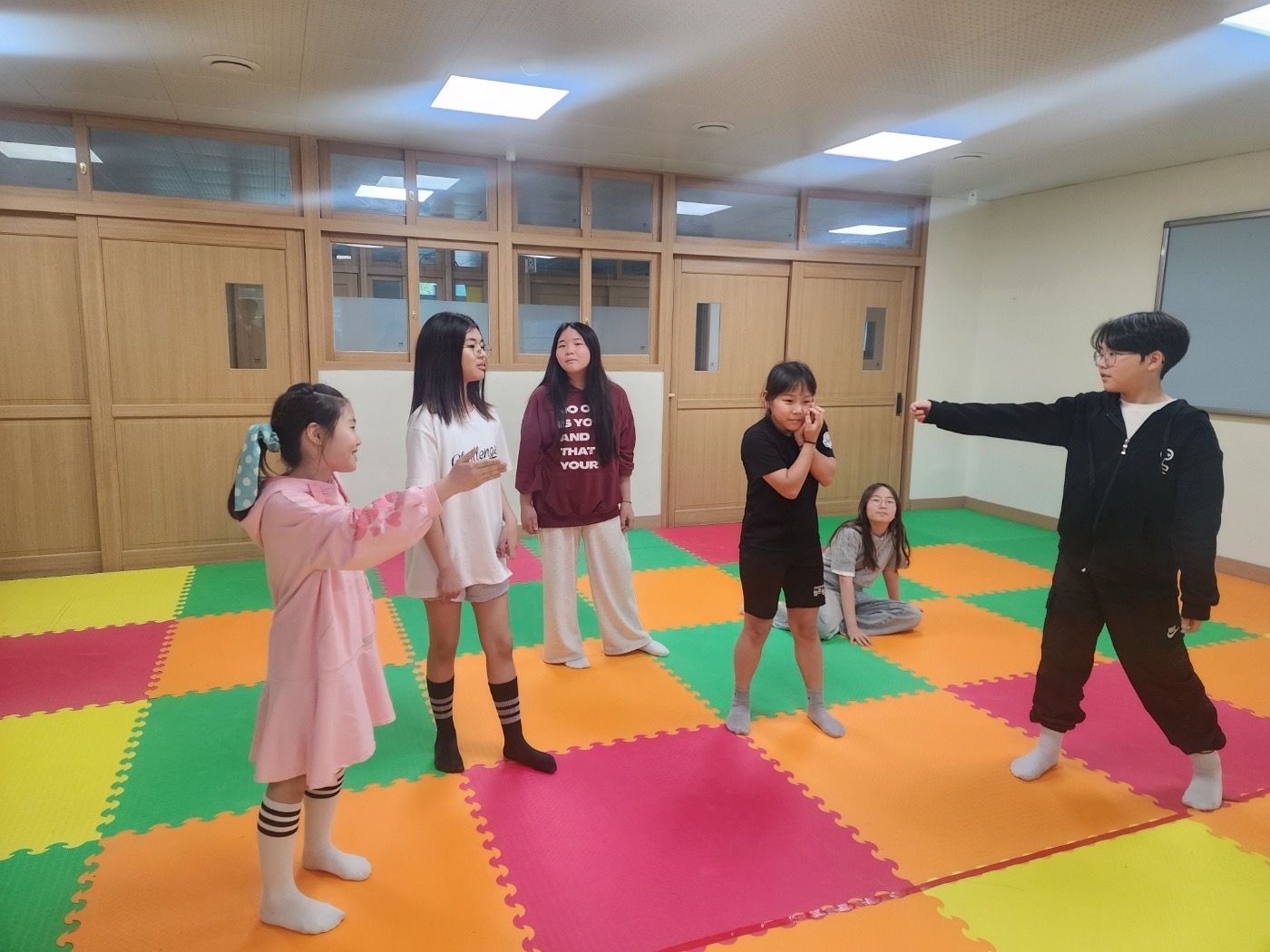 연극 놀이로 <권력 카드 놀이>를 했는데, 주어진 장소(경찰서, 공연장, 백화점, 왕궁)에서 각자의 숫자에 따라 위계 질서를 형성하여 각자의 역할을 찾아가면서 즉흥 연기를 해보았습니다. 숫자만 보고 역할을 떠올리기 쉽지 않았을텐데 아이들은 각자의 역할을 찾아가며 오히려 더 재미있게 참여해주었습니다.